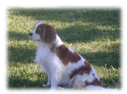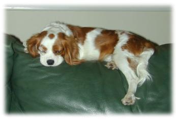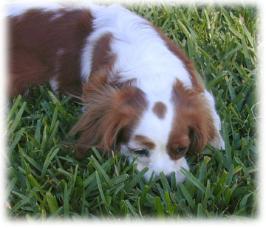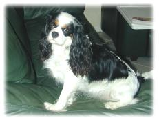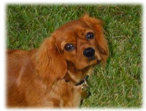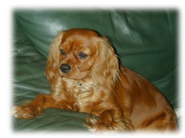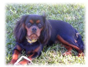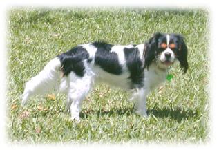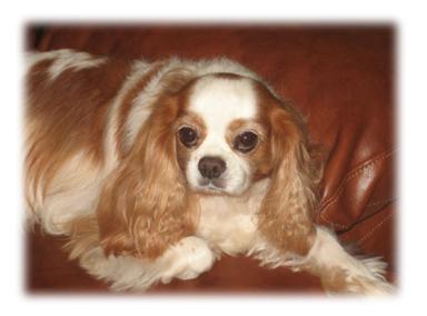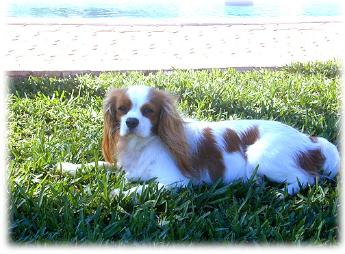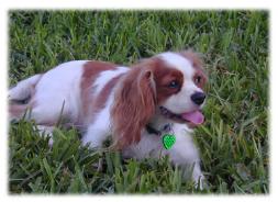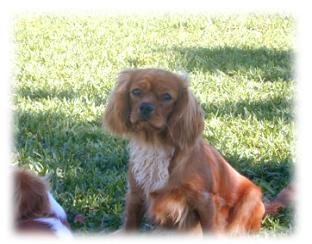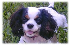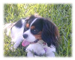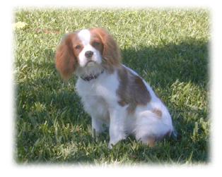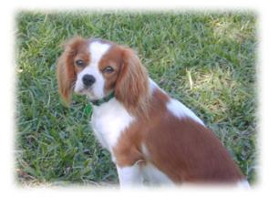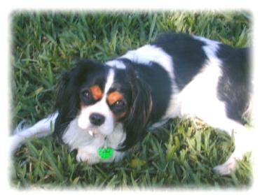 | CCC's Calypso loves to strike a pose for the camera! Calypso is our "almost adult" Cavalier. She is calm and independent, and her happiest time is with her chew bone under the tree -- not sharing with anyone! |