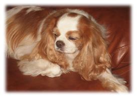 | CCC's primadonna and my "heart" Cavalier! Clover was my dream-come-true, the product of my first two Cavaliers - O'Reilly and Bailey. She is stately, cultured, and has manners like no other. Clover gets one of the spots in my bed, EVERY night -- she couldn't imagine taking turns! Clover is heart clear in 2015 and will be 10 years old, and I am proud to say I have five generations of her line. Clover is a great-grandma too! My dearest Clover -- you were my heart dog and carried me through that dark time long ago. It was so hard to say goodbye. Thank you for letting me know your time here on earth was over. Everywhere I look, you are with me. We will meet again . . . |